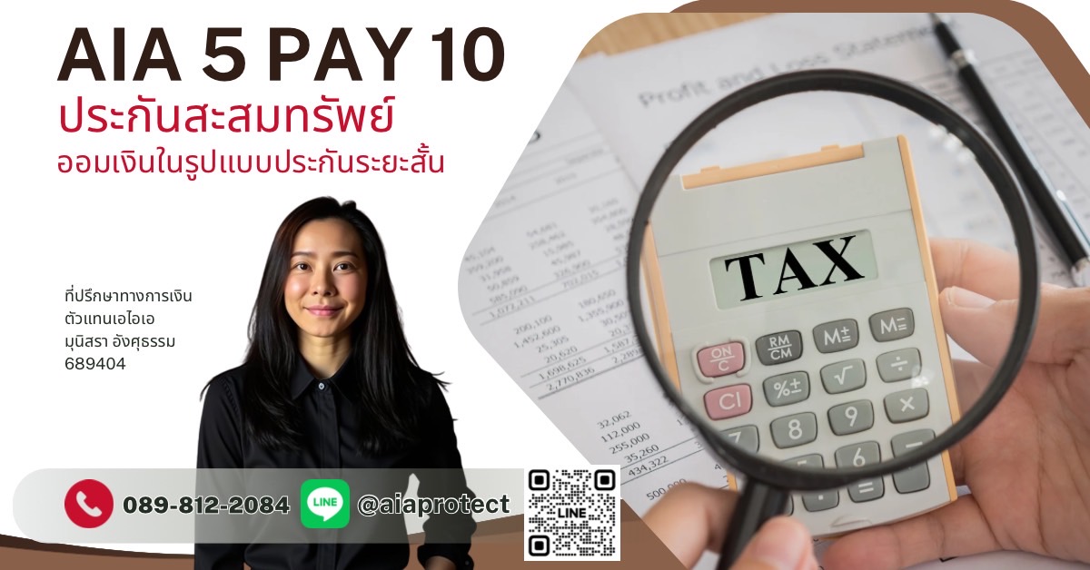 - AIA 5 Pay 10 มีระยะเวลาผ่อนเบี้ยสั้นที่สุด (5 ปี)